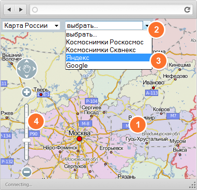 Выбирайте разные базовые подложки, чтобы увидеть как они меняются. Используйте элемент "Zoom", что изменить масштаб карты, сдвинуть карту.